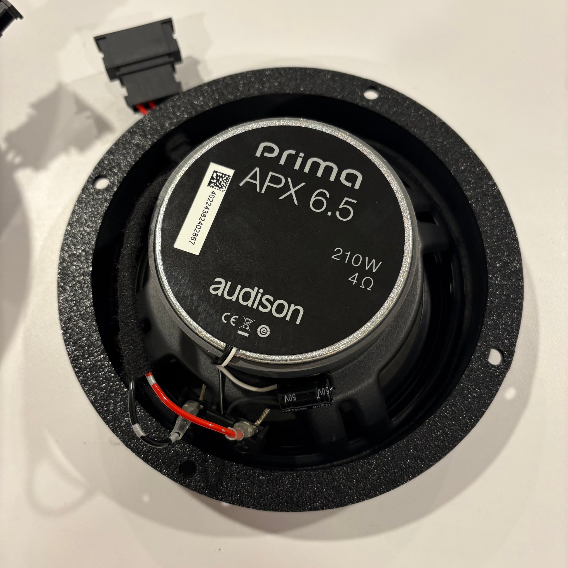 - (2) Audison APX6.5 coaxial speakers with foam tape applied